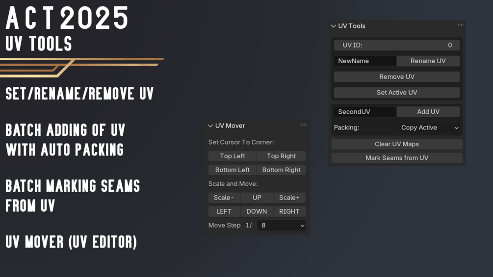 - Tool for easier Atlas Packing (Scale and Move UV with Steps)